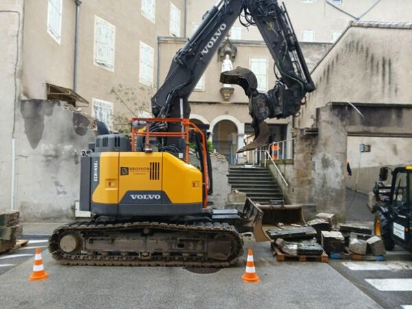 Après des mois passés à évaluer la faisabilité du projet, à peser ses bienfaits, à en compter ses contraintes, après des mois à sans cesse venir, repartir, gommer, tracer, reprendre, amender, lever des freins, après de multiples réunions de concertation pour recueillir idées ou besoins des enseignants au service des élèves, après consultation de parents, après des mois à monter le dossier, les premiers coups de pelle ont été donnés aujourd’hui (première tranche : casser le mur d’entrée, ouvrir sur un parvis).